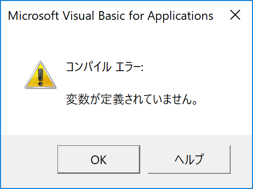 「コンパイルエラー:変数が定義されていません。」と警告が表示されます。