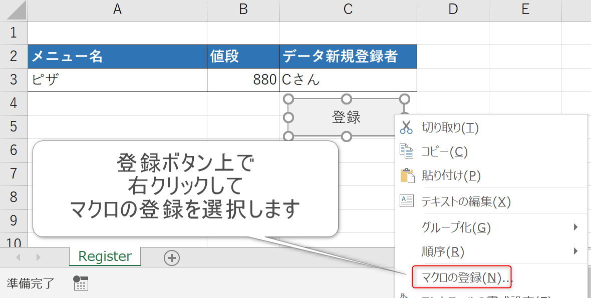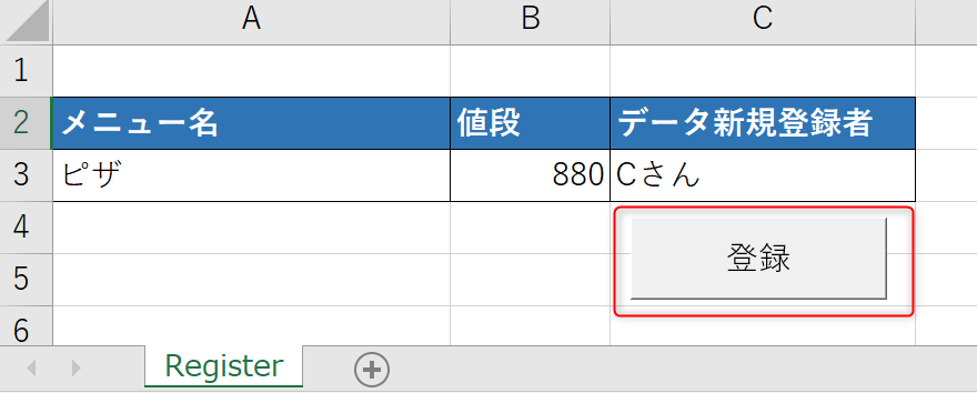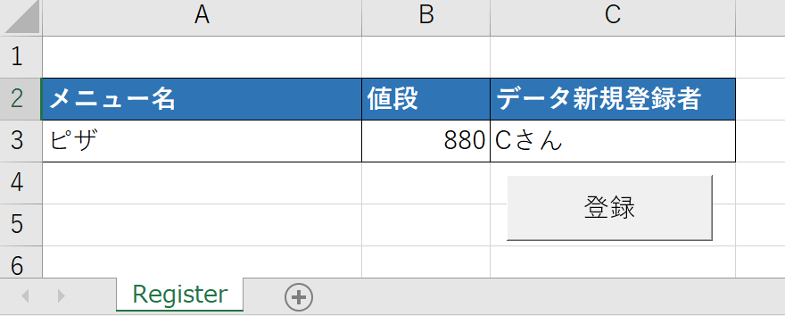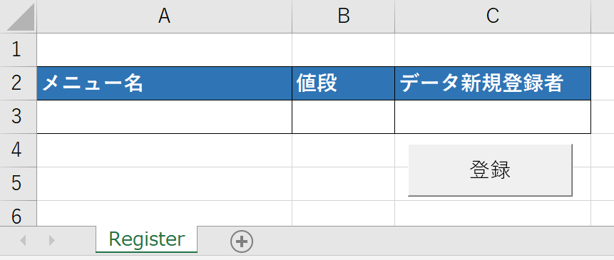 シート名はRegisterとします。