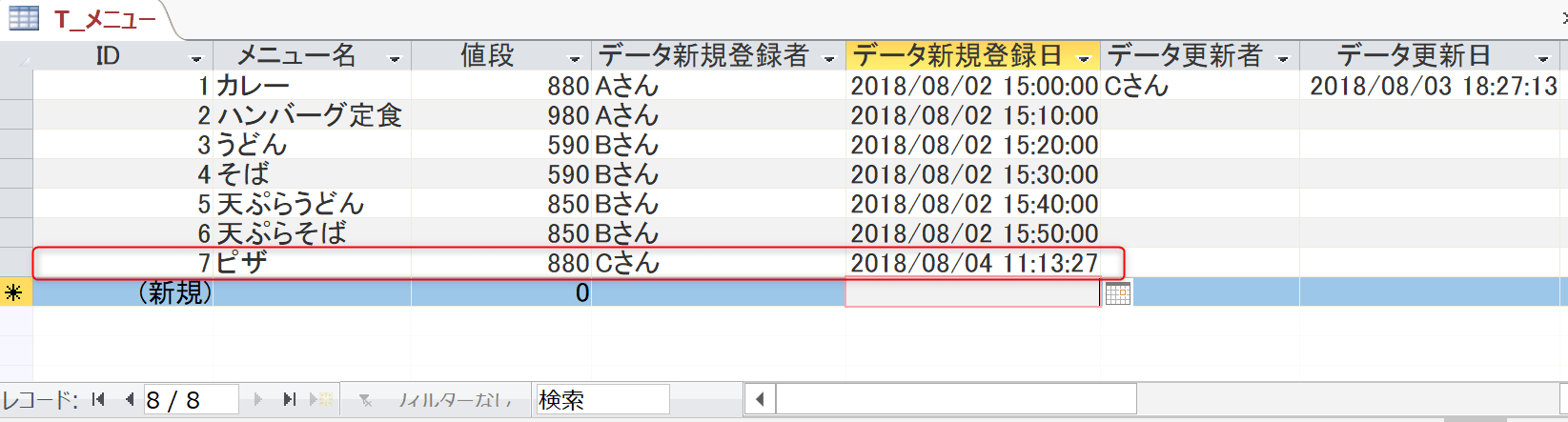 | データ新規登録日 | 日付/時刻型 |